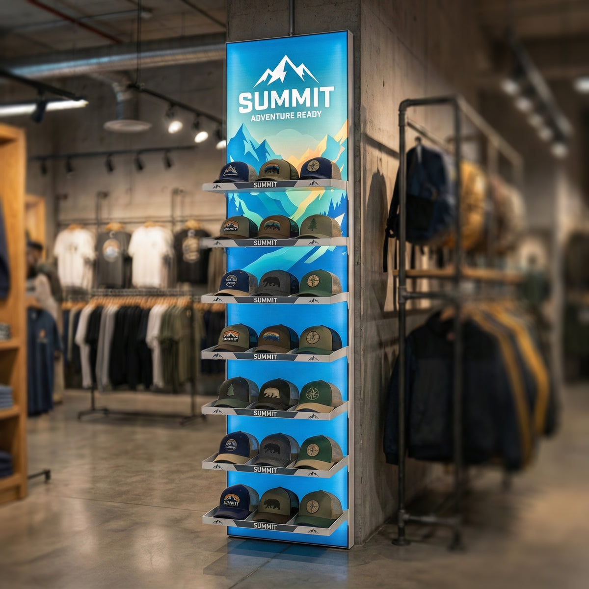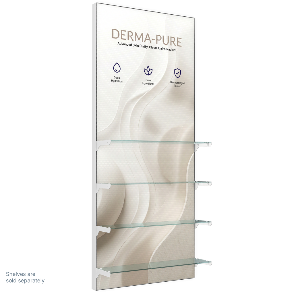 Create a stunning "halo effect" behind your products. The bright white SEG background pushes high-contrast light through your display, grabbing attention from across the store.